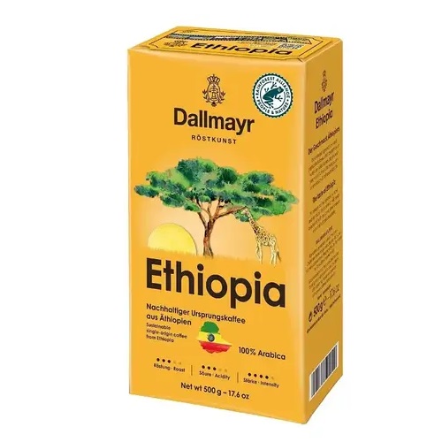 Кава мелена Dallmayr Ethiopia – натуральна кава, представлена відомим німецьким виробником. Кава складається з добірної арабіки, привезених до Німеччини з найкращих Ефіопських плантацій. Поступаючи на фабрику, зерна проходять ретельну обробку під контролем досвідчених фахівців. Кава цього виробника – справжній еталон високої якості та насиченого смаку.