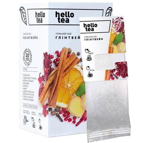 Фруктовий чай Hello Tea Глінтвейн — це напій, який занурить вас у зимовий вечір у колі улюблених людей, з чашкою зігріваючого глінтвейну. У складі кожного фільтр-пакета є величезна кількість інгредієнтів: корінь солодки, кориця, гвоздика, імбир, пелюстки суданської троянди, цедра апельсина, мускатний горіх, чорний і рожевий перець.