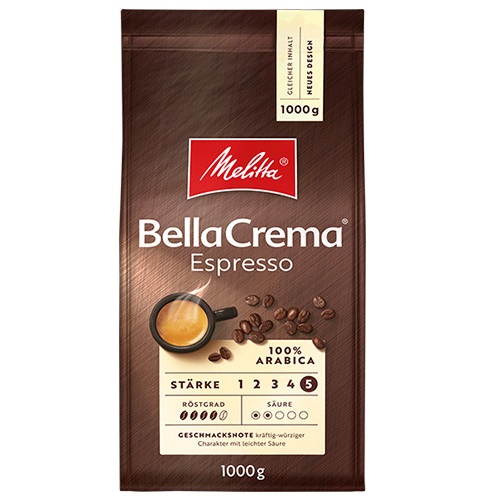 Melitta BellaCrema Espresso — це класична кава для приготування еспресо. Знаменитий своєю темною прожаркою він вразить Вас своїм неймовірним ароматом та приємним насиченим смаком. Цей сорт можна готувати як у звичайній кавоварці, так і професійній кавомашині для офісів або кав’ярні. У каві присутній легкий пряний аромат, саме тому він чудово поєднується з шоколадом, ваніллю та корицею.