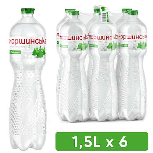 Упаковка мінеральної природної столової слабогазованої води Моршинська 1.5 л х 6 пляшок