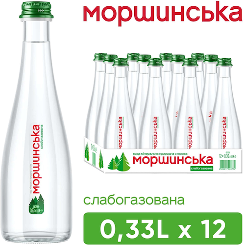 Упаковка мінеральної природної столової слабогазованої води Моршинська 0.33 л х 12 пляшок скло